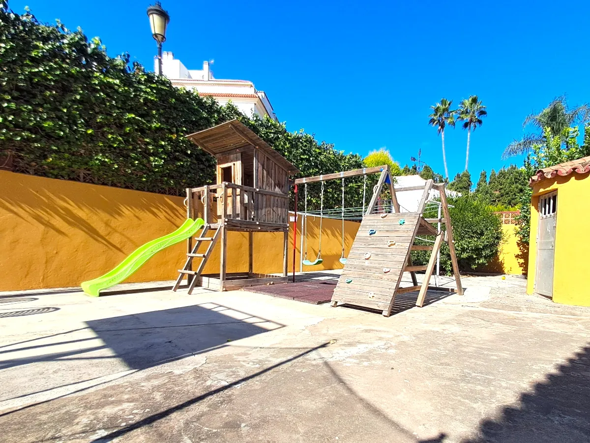 Outdoors, enjoy a private swimming pool, multiple shaded terraces, BBQ and chill-out areas, and a dedicated children’s playground, surrounded by lemon and mandarin trees and colorful Mediterranean plants. A spacious garage with several storage rooms and an energy-efficient solar water system complete this inviting home — designed for relaxed, sun-filled living on the Costa del Sol.